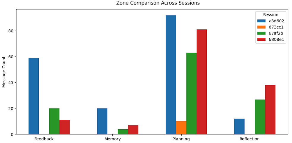 - Tagging: Assigns cognitive zones (e.g., Planning, Reflection, Feedback, Memory) to assistant messages.